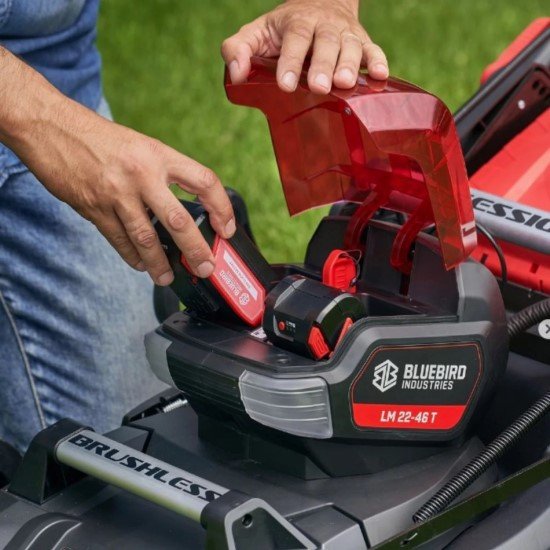 Akumuliatorinė vejapjovė BlueBird LM 22-46T su 2×5 Ah akumuliatoriais ir įkrovikliu