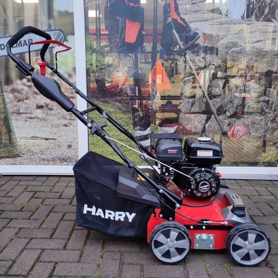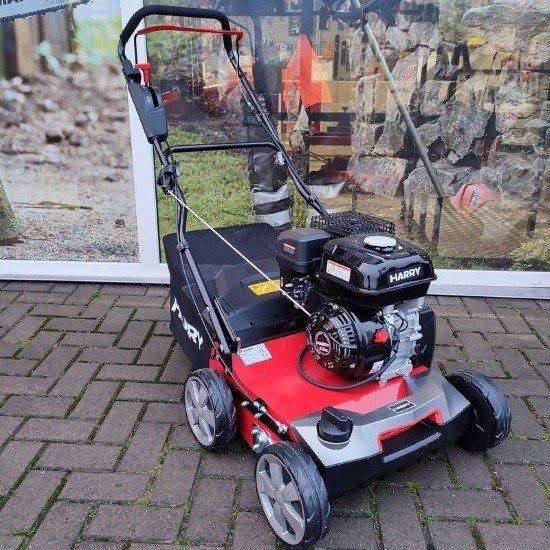 HARRY HRA 4022 C benzininis skarifikatorius-aeratorius. Du viename funkcija – skarifikavimui galima naudoti volelį su 18 peilių arba skarifikavimui galima naudoti volelį su 24 spyruoklėmis. Komplekte yra abu voleliai.