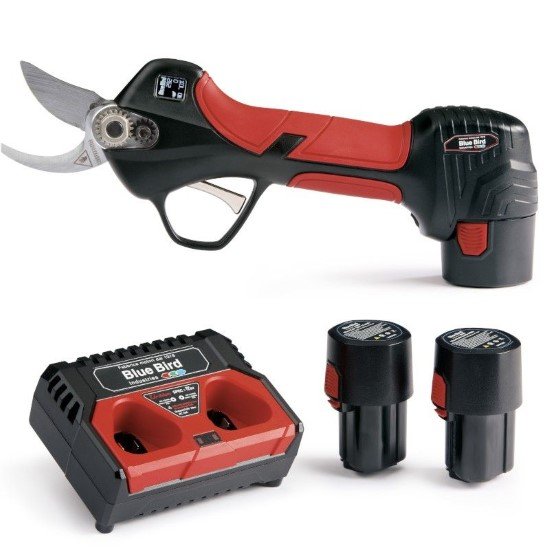 Akumuliatorinis sekatorius Blue Bird PS 22-23 komplekte kartu su dviem 12.6V, 2.0 Ah akumuliatoriais ir įkrovikliu.