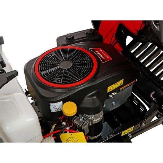 Šis sodo traktoriukas turi hidrostatinę transmisiją, kuri leidžia patogiai pedalu valdyti greitį tiek pirmyn, tiek atgal. Peiliai paleidžiami tiesiog mygtuko paspaudimu per elektromagnetinę sankabą.