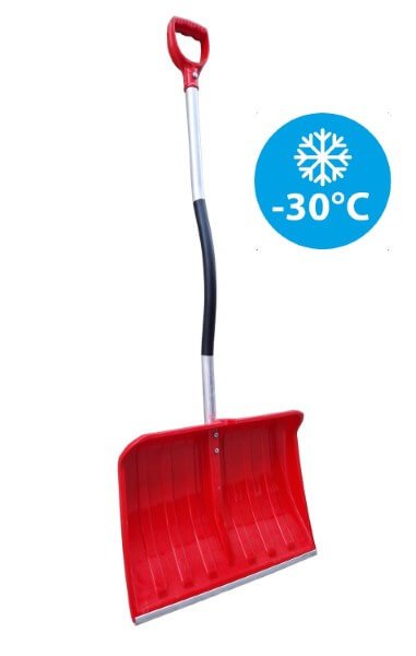 Lengvas ir tvirtas sniego kastuvas, pagamintas iš atsparaus plastiko su sutvirtinta aliuminio juosta. Dėl ergonomiško aliuminio koto įrankis sveria vos 1.11 kg, o guminė izoliacija apsaugo rankas nuo šalčio. Darbinis plotis – 55 cm, aukštis – 38 cm, bendras aukštis