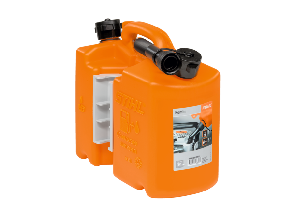 - Kombinuotas dvigubas degalų ir alyvos bakelis, pagamintas iš tvirto oranžinės spalvos plastiko