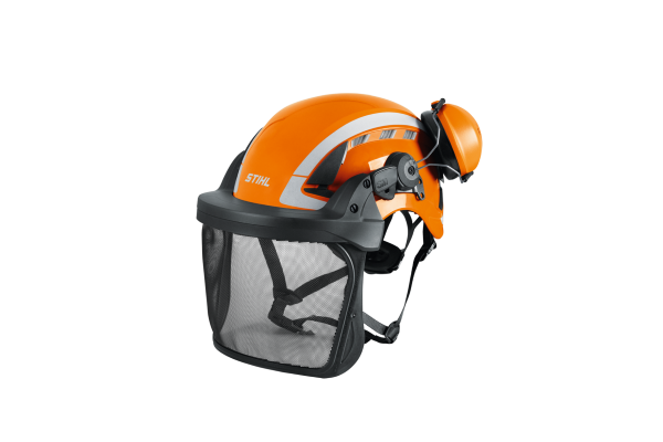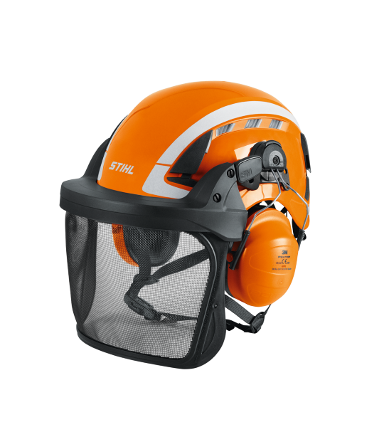 - Universalus šalmo komplektas su klausos apsauga, veido apsauga ir tvirtu šalmu